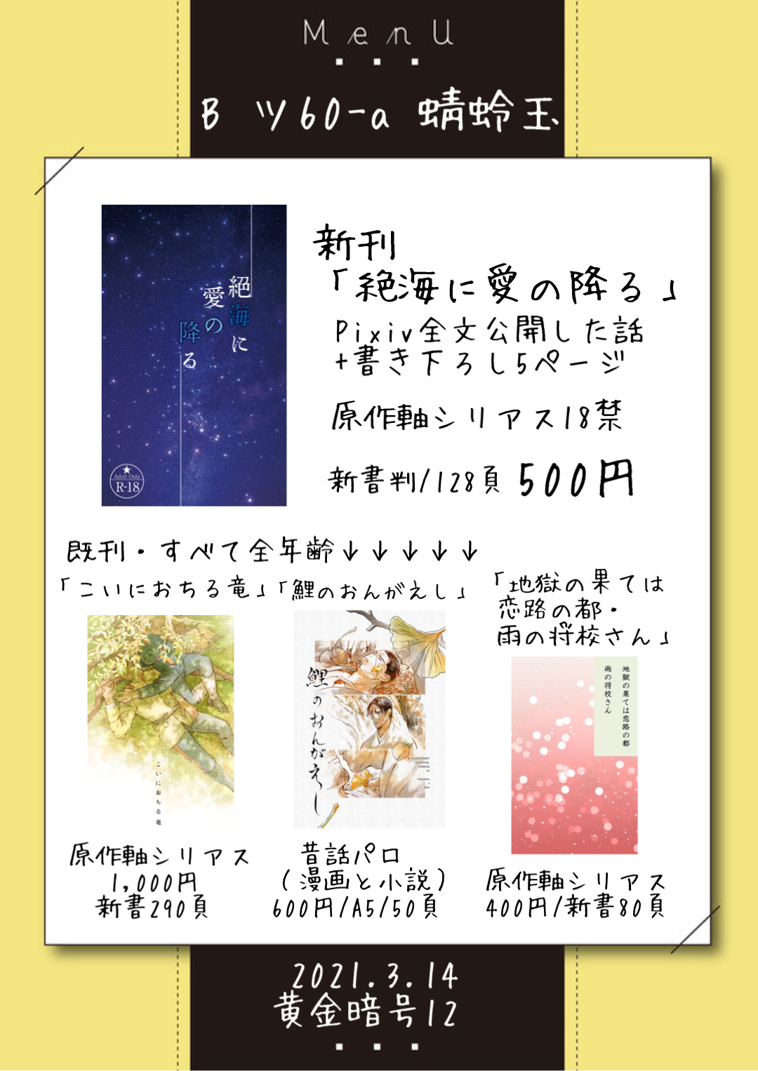 既刊も枯渇してるので頒布するものがない